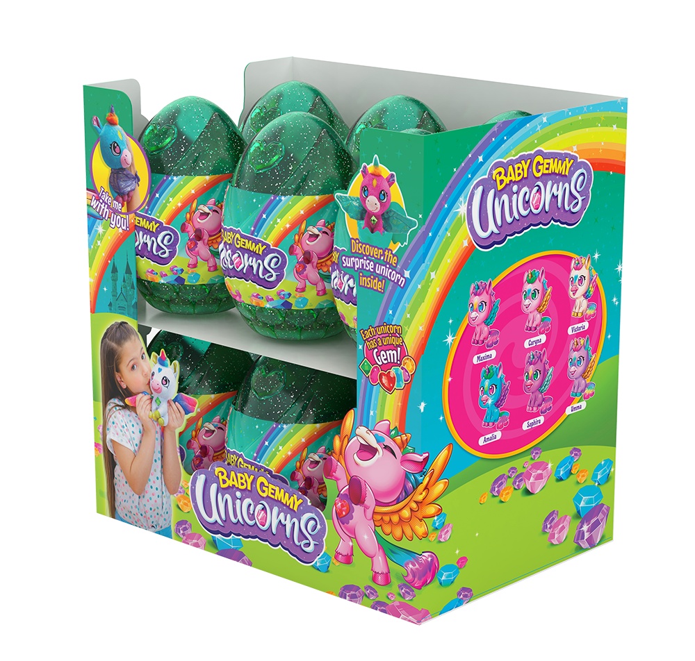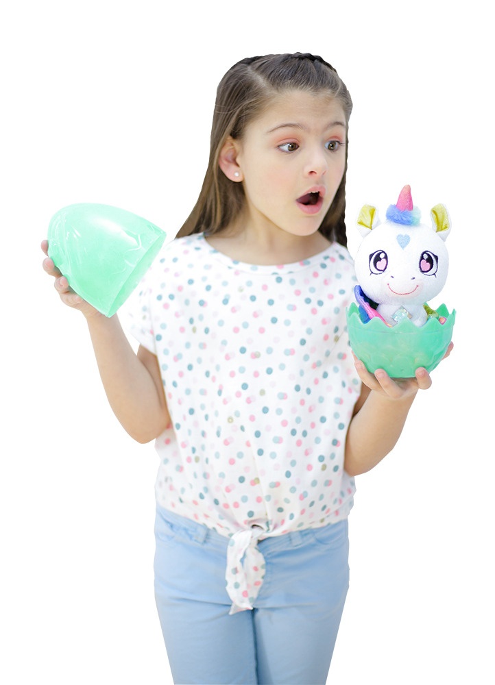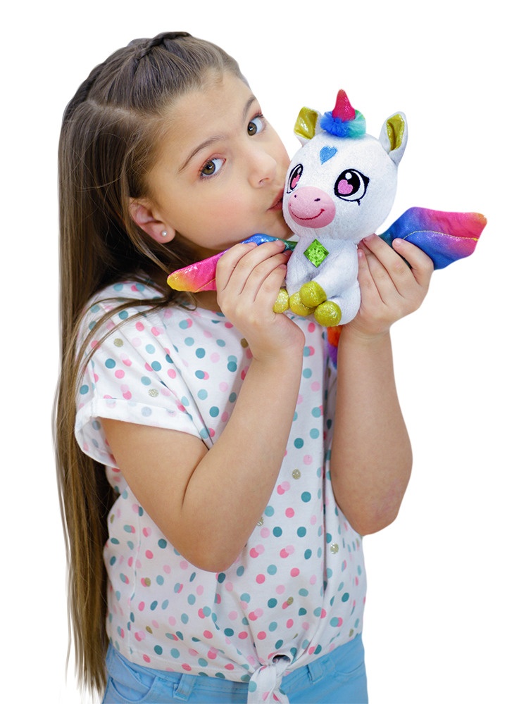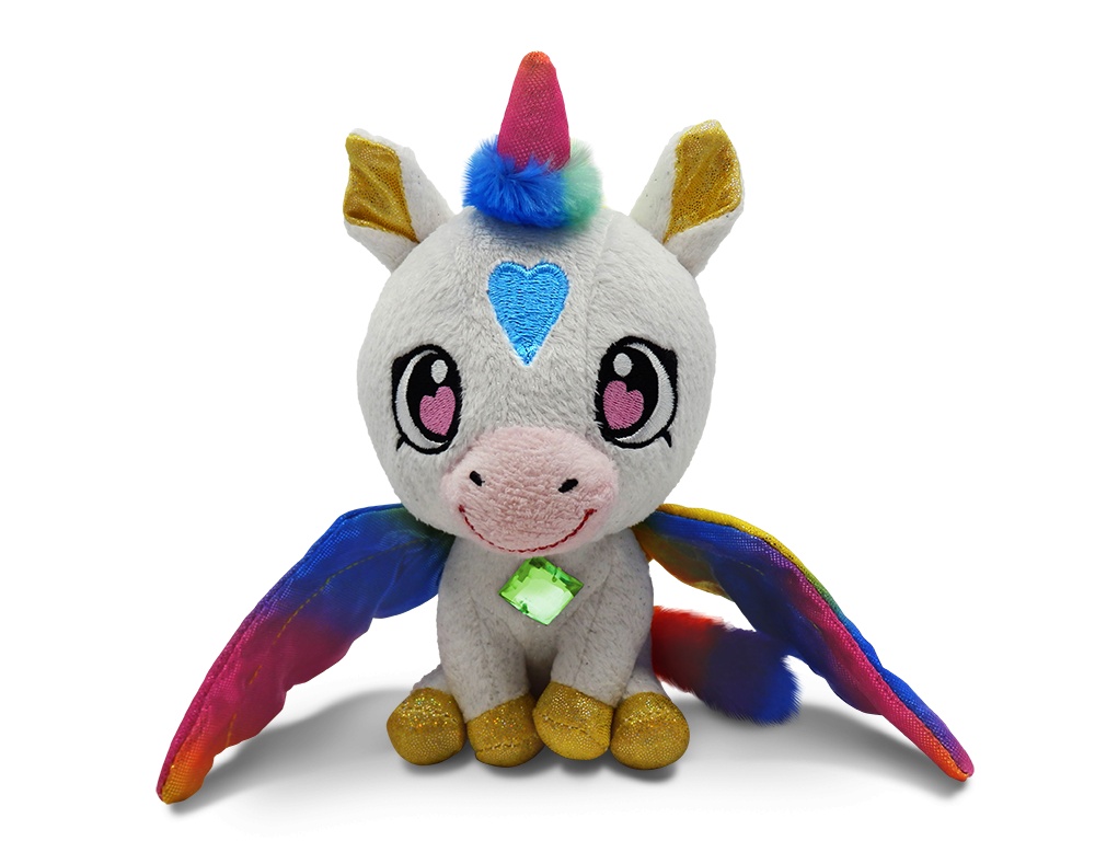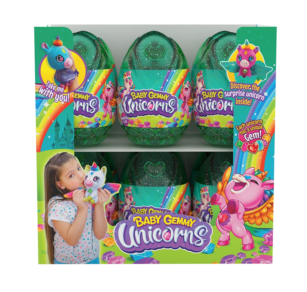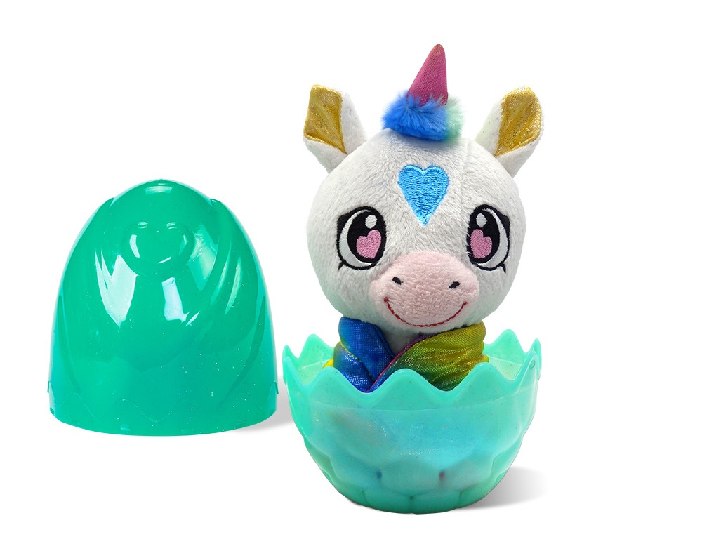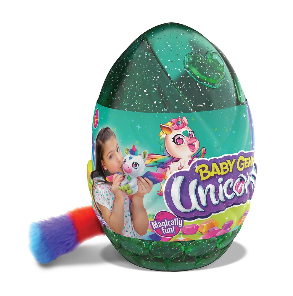 Baby Gemmy jednorožec je kouzelné vajíčko, které ukrývá roztomilého plyšového jednorožce. Každý jednorožec má unikátní drahokam. Jednorožce můžeš nosit jako náramek kolem ruky (na křídlech má suchý zip. Hračka je vhodná pro děti od 3 let.