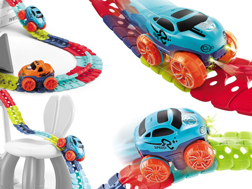 Absolutní novinka, flexibilní dráha s inovativním způsobem spojování dílků, vám poskytne hodiny neuvěřitelné zábavy.
