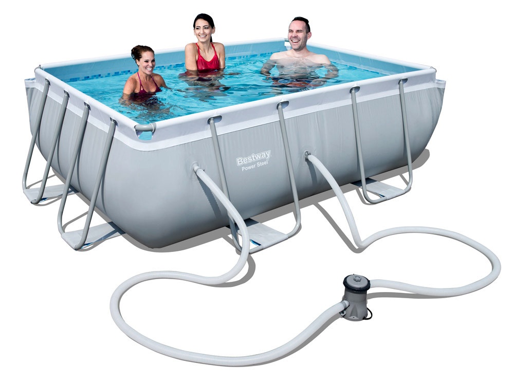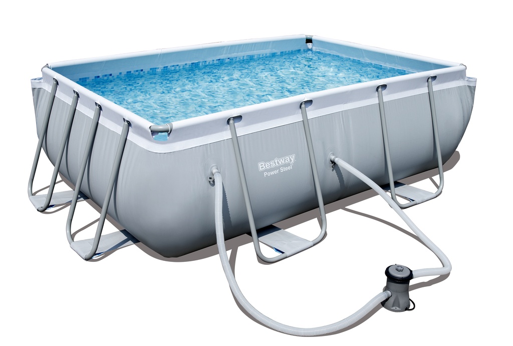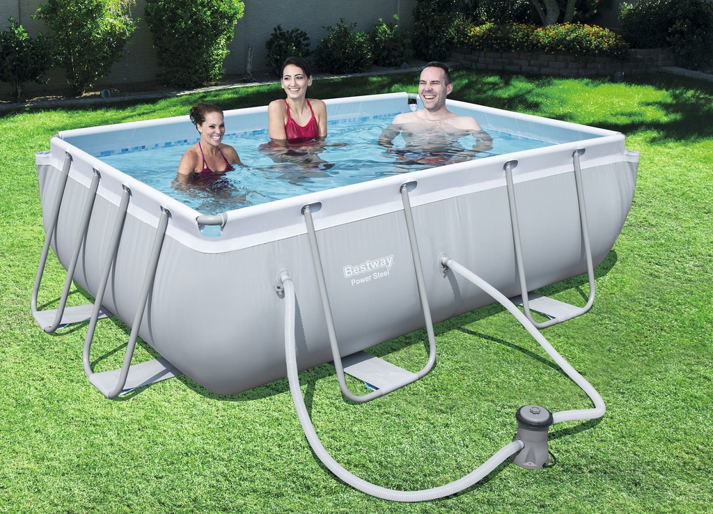 - Stačí pouze sestavit kovovou konstrukci a bazén napustit vodou
