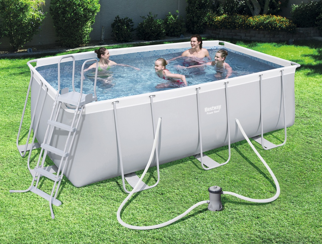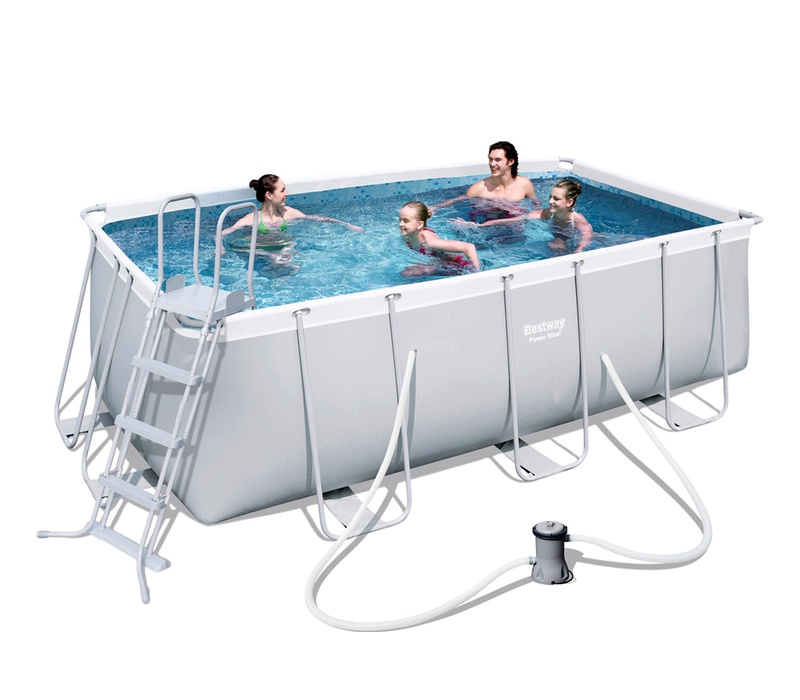 - Stačí pouze sestavit kovovou konstrukci a bazén napustit vodou