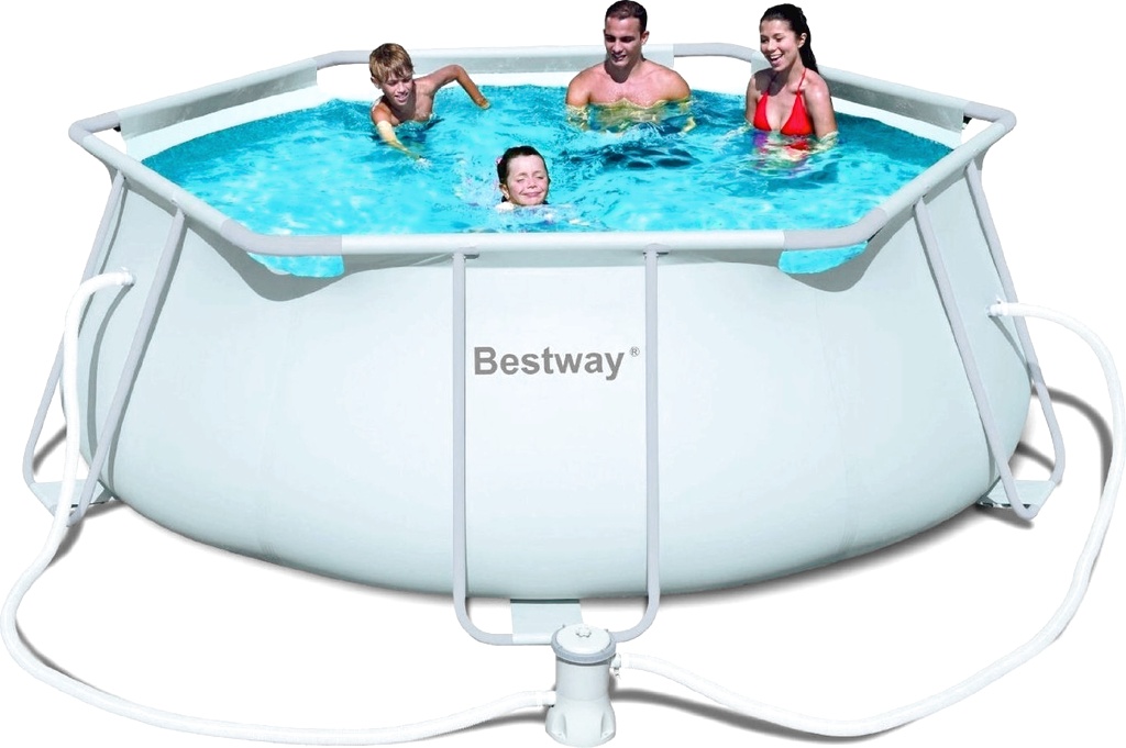 Nadzemní rodinný zahradní bazén od renomované italské firmy Bestway, se skládací kovovou konstrukcí a kartušovou filtrací.