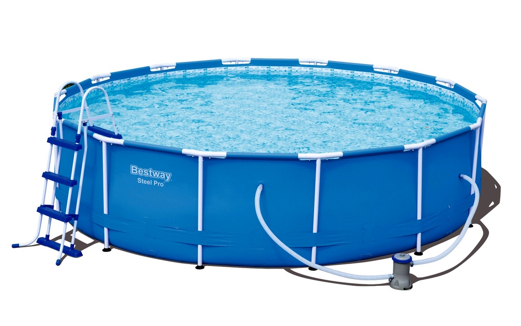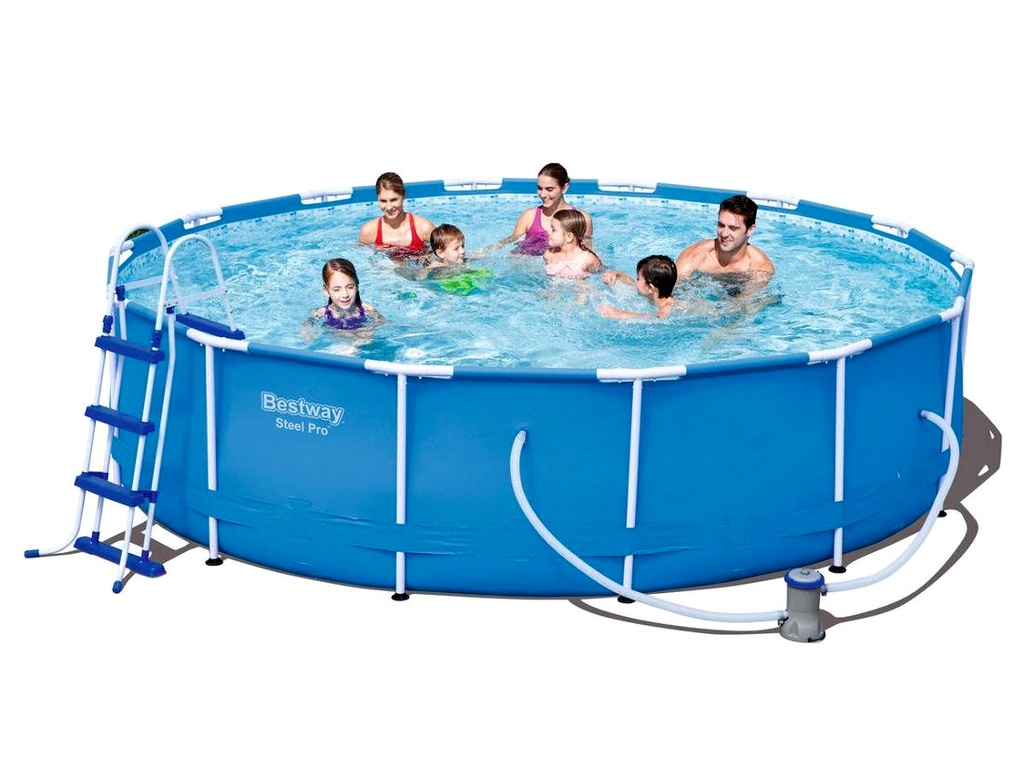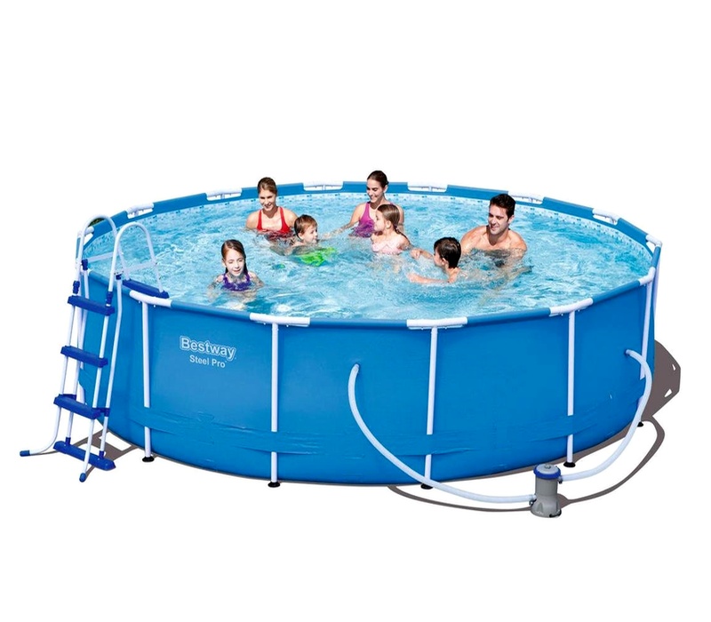 Nadzemní rodinný zahradní bazén od renomované italské firmy Bestway, se skládací kovovou konstrukci a kartušovou filtraci. Stačí pouze sestavit kovovou konstrukci a bazén napustit vodou.