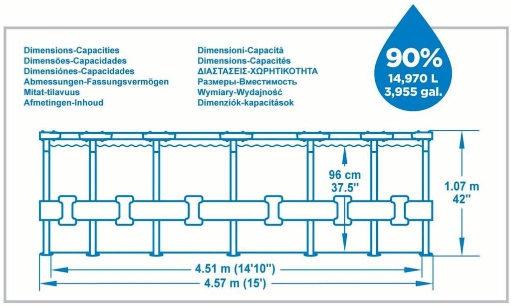 Do provozu uvedete bazén velice snadno a rychle a to díky jednoduché a časově nenáročné montáži, stačí pouze sestavit kovovou konstrukci a posléze bazén napustit vodou.