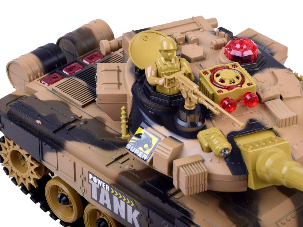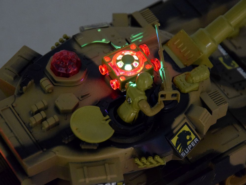 Po přesném výstřelu se ozve zvuk zasaženého cíle a zhasne jedno ze světel umístěných na zadní straně zasaženého tanku. Při výstřelu se kromě zvuku střelby celý tank otřese velmi realistickým zpětným rázem jako na skutečném bojišti. Po trojím zásahu protivníka bude jeho tank na chvíli znehybněn. To znamená, že jste prohráli bitvu. Nádrž se přibližně na 30 sekund znehybní. Po uplynutí této doby může bitva začít od začátku. Jak se na skutečný tank poháněný bateriemi sluší, je vybaven pásovým podvozkem na měkkých gumových pásech, které zajistí dobrou přilnavost.