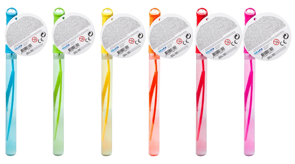 Bublifuková hůlka 37,5 cm – různé barvy, velké bubliny. Splňuje normy EU, zdravotně nezávadné.