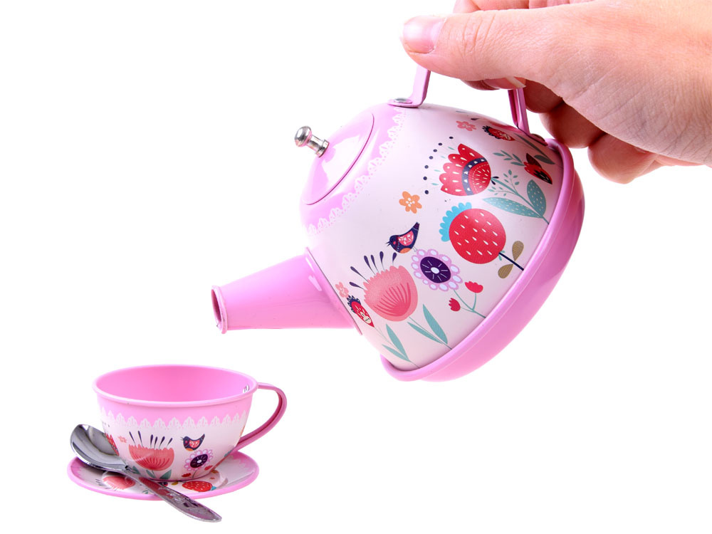 Nádobí je vyrobeno z kovu s důrazem na detail. Pozornost upoutají krásné pastelové barvy a půvabná květinová grafika.