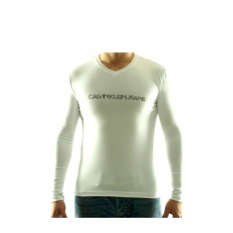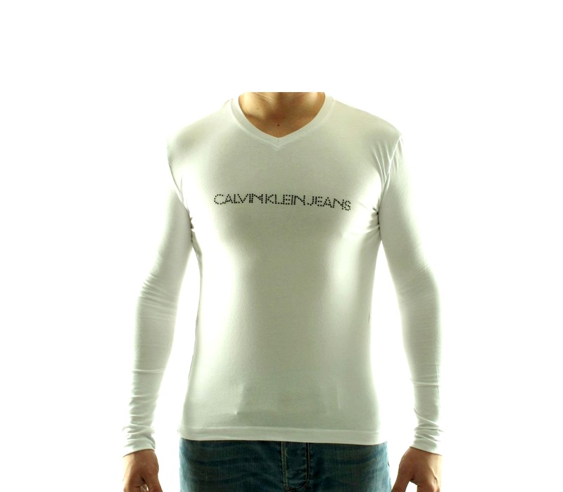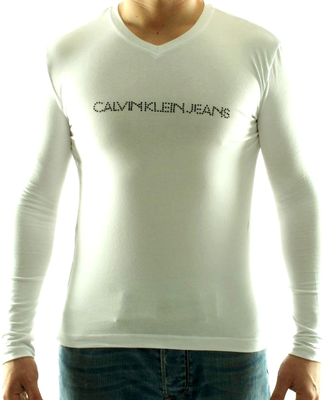 Pánské značkové tričko Calvin Klein s dlouhým rukávem a véčkovým výstřihem, v originálním stylovém designu, určené pro náročné muže.