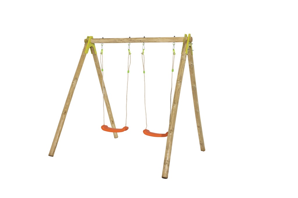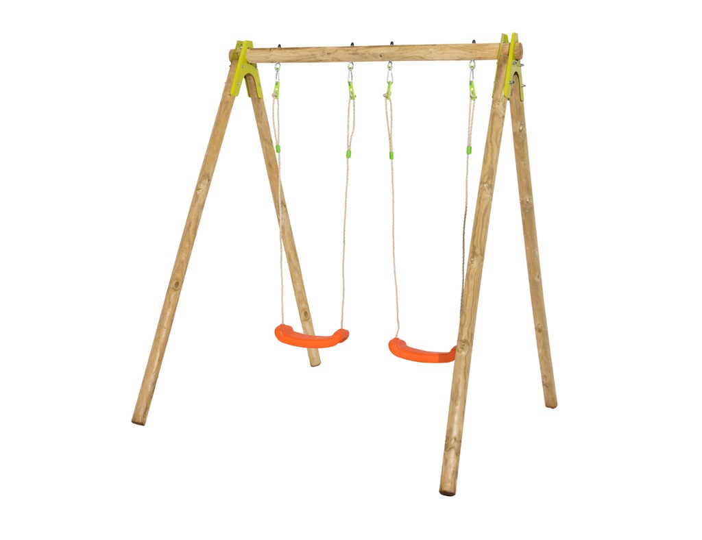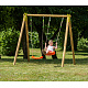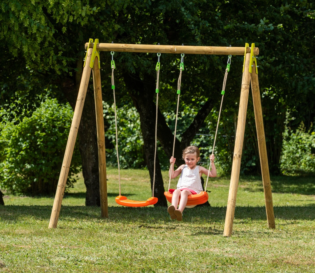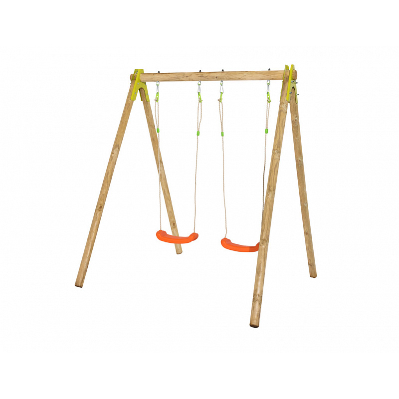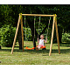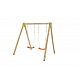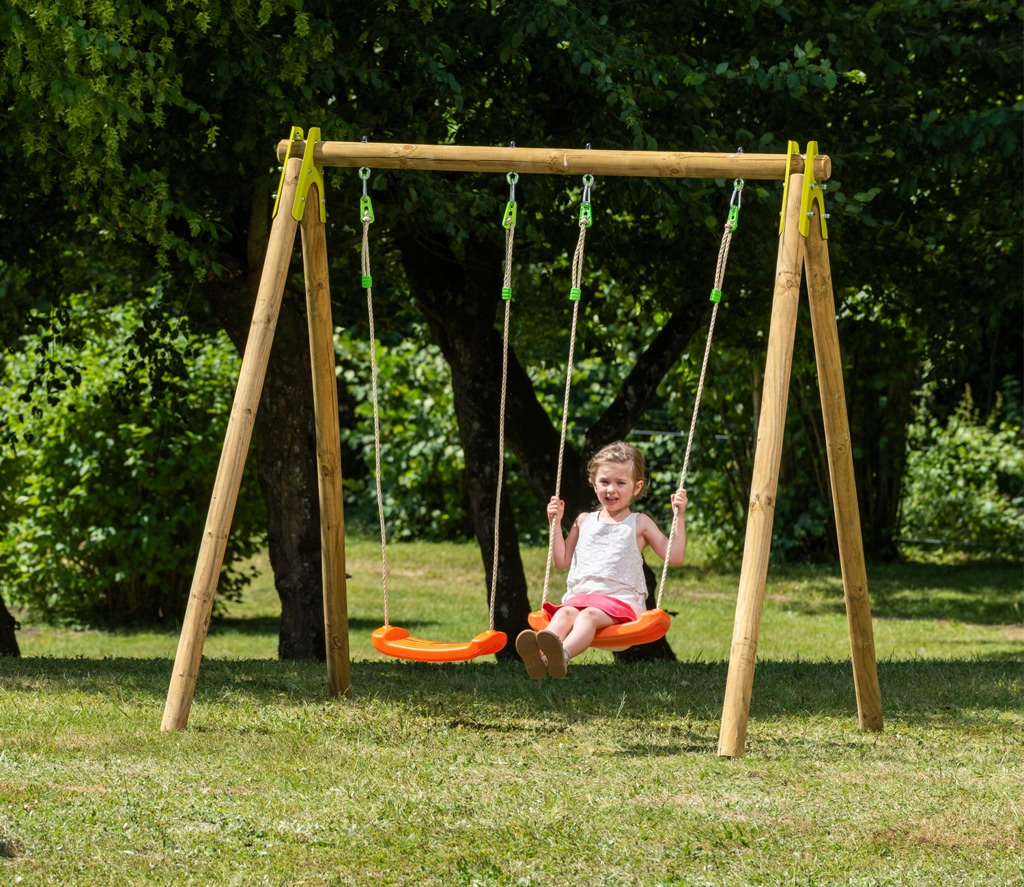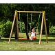 CHERRY – celoDŘEVĚNÉ sestavy 190 cm vysoké, materiál harmonizuje se okolní zahradou.Nastavitelná výška plastového sedátka – 2 ks, vyrobené vstřikovací metodou, houpačka zavěšena na pevném závěsném oku. Spoje jsou kovové !
