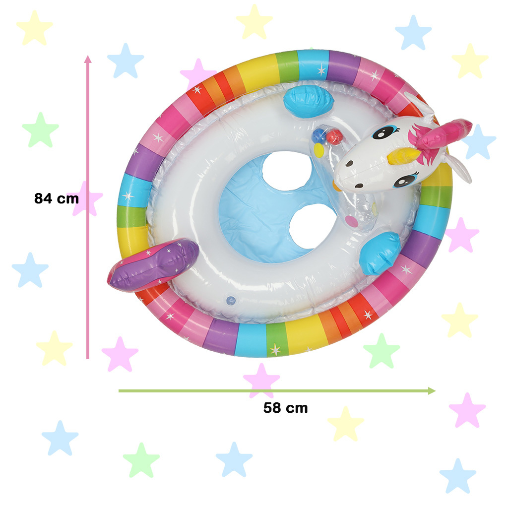 Barevné plavací kolo ve tvaru jednorožce jistě povzbudí každého malého plavce, aby vlezl do vody a vydal se vstříc vodnímu dobrodružství! Navíc takový roztomilý kruhový tvar jistě přitáhne spoustu pozornosti!