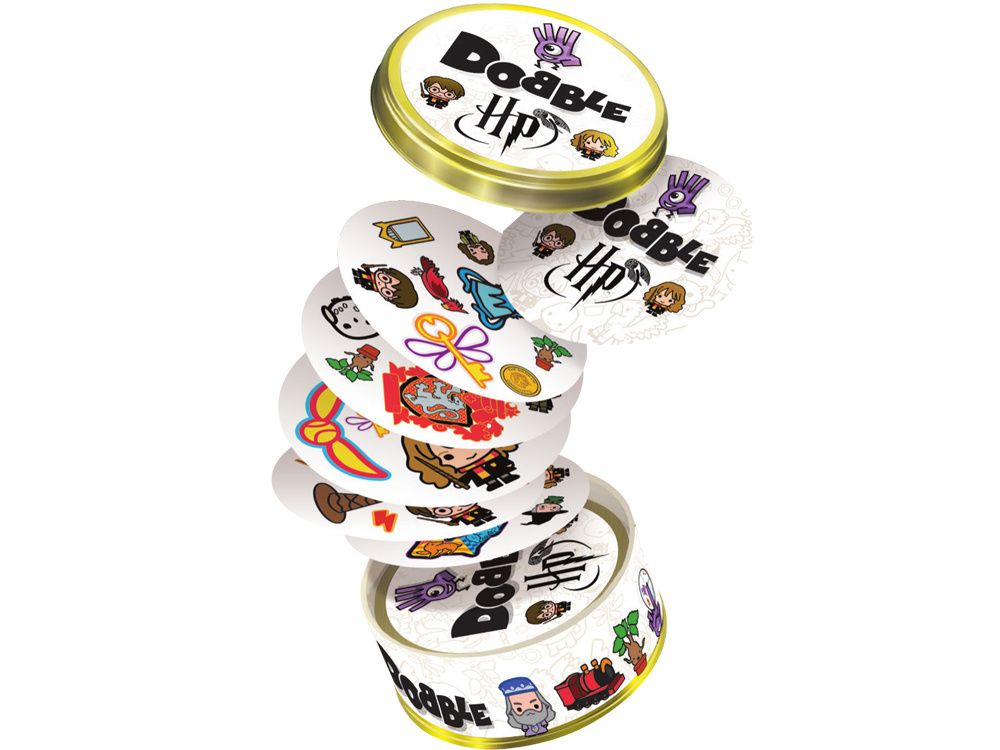 Dobble: Harry Potter je jedinečné spojení bestsellerové pozorovací hry s magickým světem Bradavic. Najdeš zde oblíbené hrdiny, magická stvoření, předměty a symboly známé z knih a filmů o Harrym Potterovi. Tvým úkolem je jedno: najít jeden společný symbol mezi dvěma kartami rychleji než ostatní hráči.