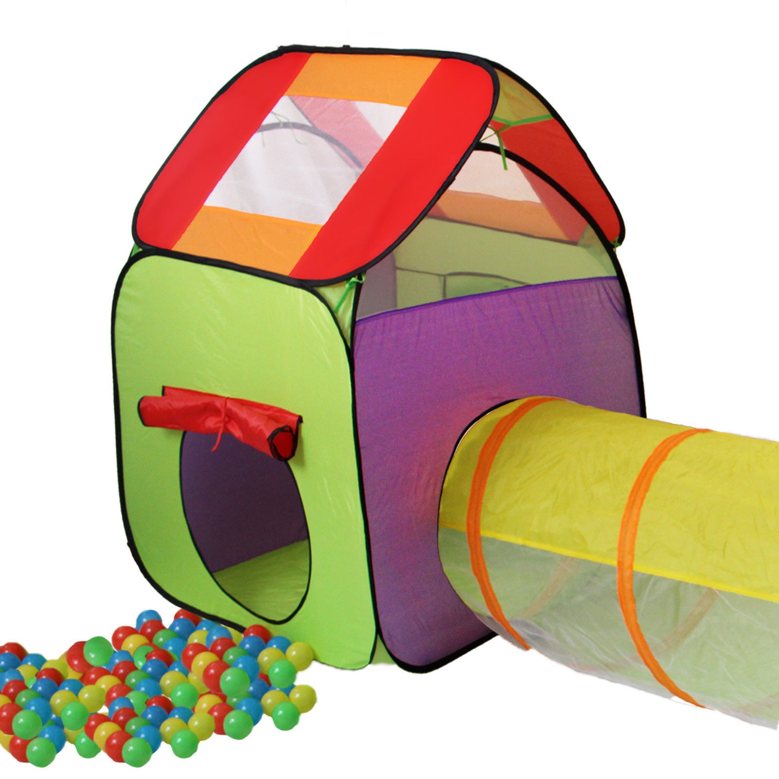 - Balení obsahuje 200 míčků, dětský stan, tunel, domeček a pohodlné pouzdro pro přenášení