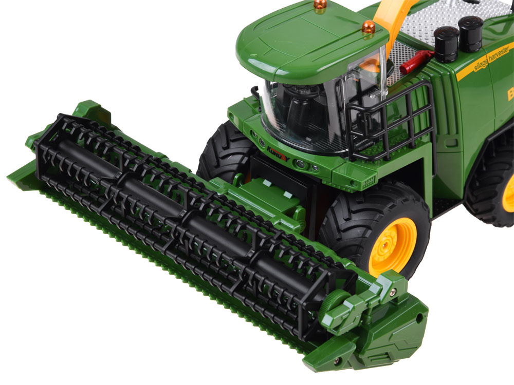 Žací ústrojí je pohyblivé, což znamená, že při jízdě se žací ústrojí (hřídel s noži) otáčí stejně jako u skutečného kombajnu. Záhlaví lze také zvedat a spouštět. Rameno je otočné o 360°, takže přívěs na obilí lze umístit z jakékoli strany.