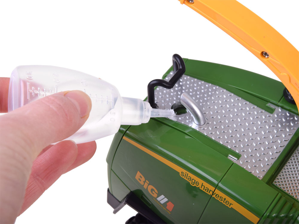 Největším lákadlem je však bezpochyby funkce kouře. jednoduše nalijte vodu pomocí dávkovací láhve do zásobníku umístěného pod stříbrnou klapkou.Po aktivaci tlačítka kouře na dálkovém ovladači začnou ze zadní části kombajnu stoupat obláčky páry, které jsou dále osvětleny malou LED diodou v těle kombajnu. Efekt je velmi realistický.