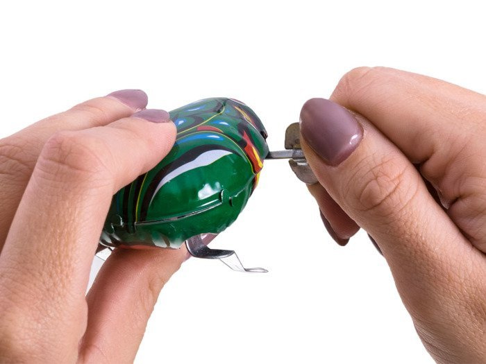 Žabka na klíček je určena dětem. Hračka jako za starých časů, vyrobená z kovu v krásné zelené barvě a přišroubovaná klíčkem. Pohyb plechové žabky zajišťuje pružinový mechanismus přišroubovaný pomocí klíče.