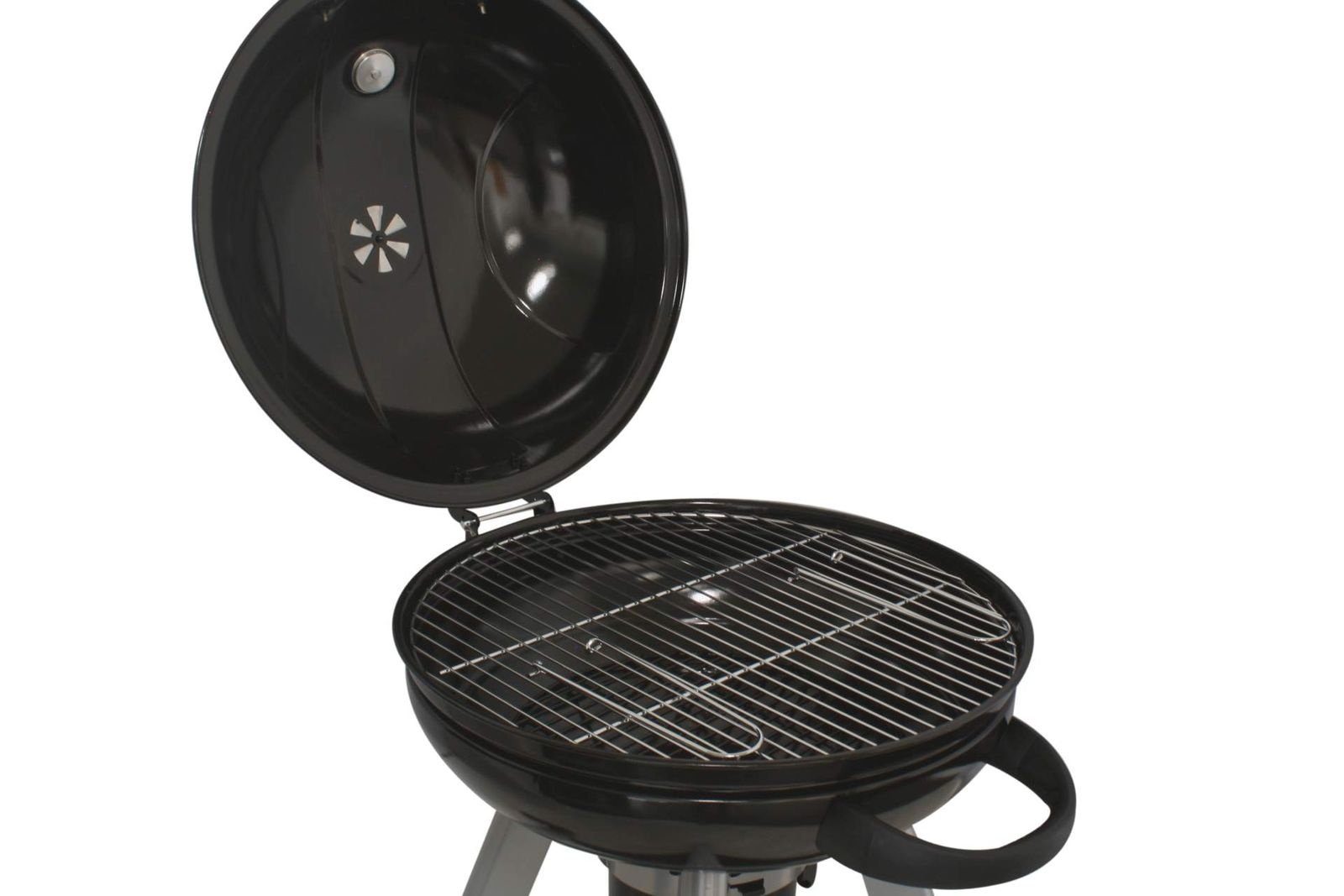 Gril disponuje ocelovým roštem. Díky třem nosným nožičkám lze gril položit na téměř jakoukoliv podložku.