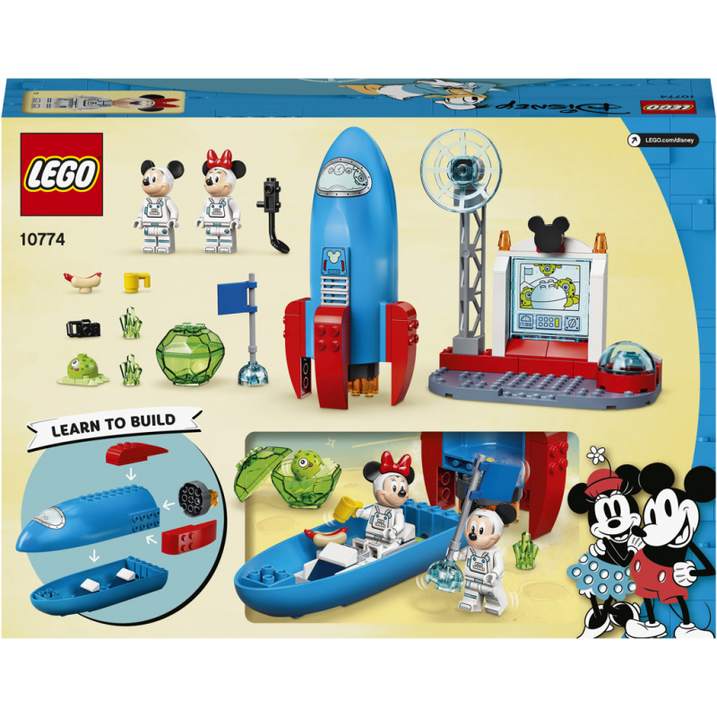 "Nakopněte dětskou představivost pomocí stavebnice Myšák Mickey a Myška Minnie jako kosmonauti (10774) z edice Mickey a přátelé od LEGO® ǀ Disney. Sada obsahuje otevírací model rakety a vesmírné stanice, díky kterým se mohou děti ve věku od 4 let vydat společně s Myšákem Mickeym a Myškou Minnie na vzrušující dobrodružství.