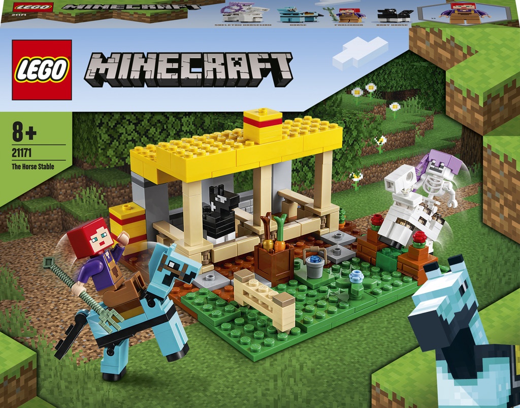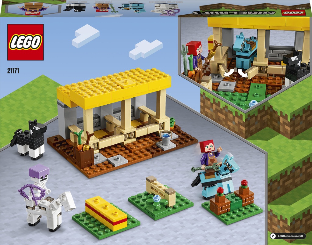 "Stavebnice Koňská stáj (21171) od LEGO® Minecraft™ kombinuje zábavu a dobrodružství z populární online hry s nekonečnými kreativními možnostmi LEGO kostek a radostí z péče o koně.