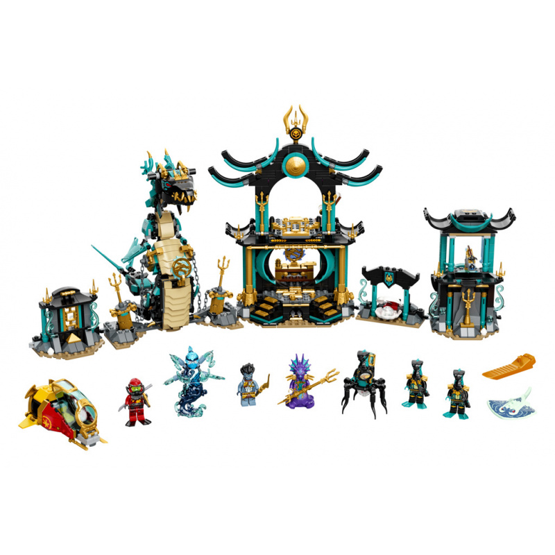 Stavebnice LEGO NINJAGO děti okamžitě přenesou do fascinujícího světa fantastické akce. V něm mohou spojit síly s oblíbenými nindža hrdiny a postavit se silám zla s pomocí úžasné sbírky nindžovských vozidel, včetně tryskáčů, aut a robotů." „• Pozoruhodná sada z podmořského prostředí pro přehrávání nindža dobrodružství. • Obsahuje 7 minifigurek, včetně potápěče Kaie, NRG Nyi a prince Kalmaara. • Součástí chrámu je vězení a had, ale také pasti a vystřelovače. • Děti od 9 let si jistě budou rády hrát na nindža hrdiny. • Model chrámu na výstavce určitě ohromí všechny kamarády. • Podívejte se po dalších stavebnicích řady LEGO® NINJAGO® na motivy televizního seriálu. • Stavebnice LEGO® NINJAGO® přenesou děti do vzrušujícího světa dobrodružství. • LEGO® kostky vyrábíme z těch nejkvalitnějších materiálů už od roku 1958. • LEGO® kostky splňují přísné normy z hlediska bezpečnosti.“