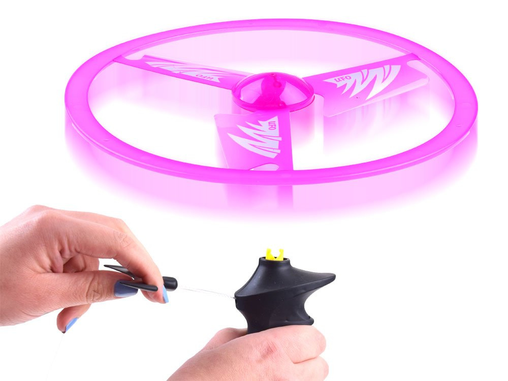Úžasný létající disk, frisbee, létající UFO pro hru v parku, na zahradě pod širým nebem. Tahací hračka a světelné efekty zajistí spoustu pohybu a zábavy. Vynikající disk pro hraní v parku a na pláži. Létající talíř je nejlepší způsob pohybu venku. Hračka poskytuje senzační světelné efekty při večerním hraní díky přiloženým bateriím, které osvětlují LED diody umístěné v desce.