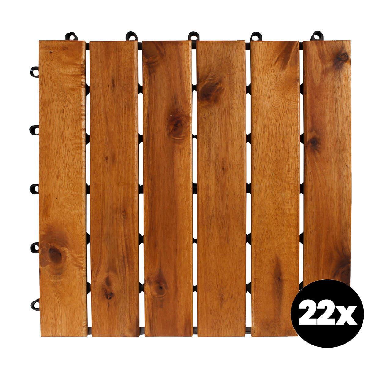 Podlahové dlaždice jsou vyrobené z kvalitního akáciového dřeva, což je tropické tvrdé dřevo, které je odolné proti vlivům počasí a má dlouhou životnost.