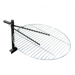 Otočný grilovací rošt na ohniště s polohovacím držákem o průměru 40 cm. Praktický rošt pro grilování masa a zeleniny, který je možno snadno vytáčet mimo prostor ohniště.