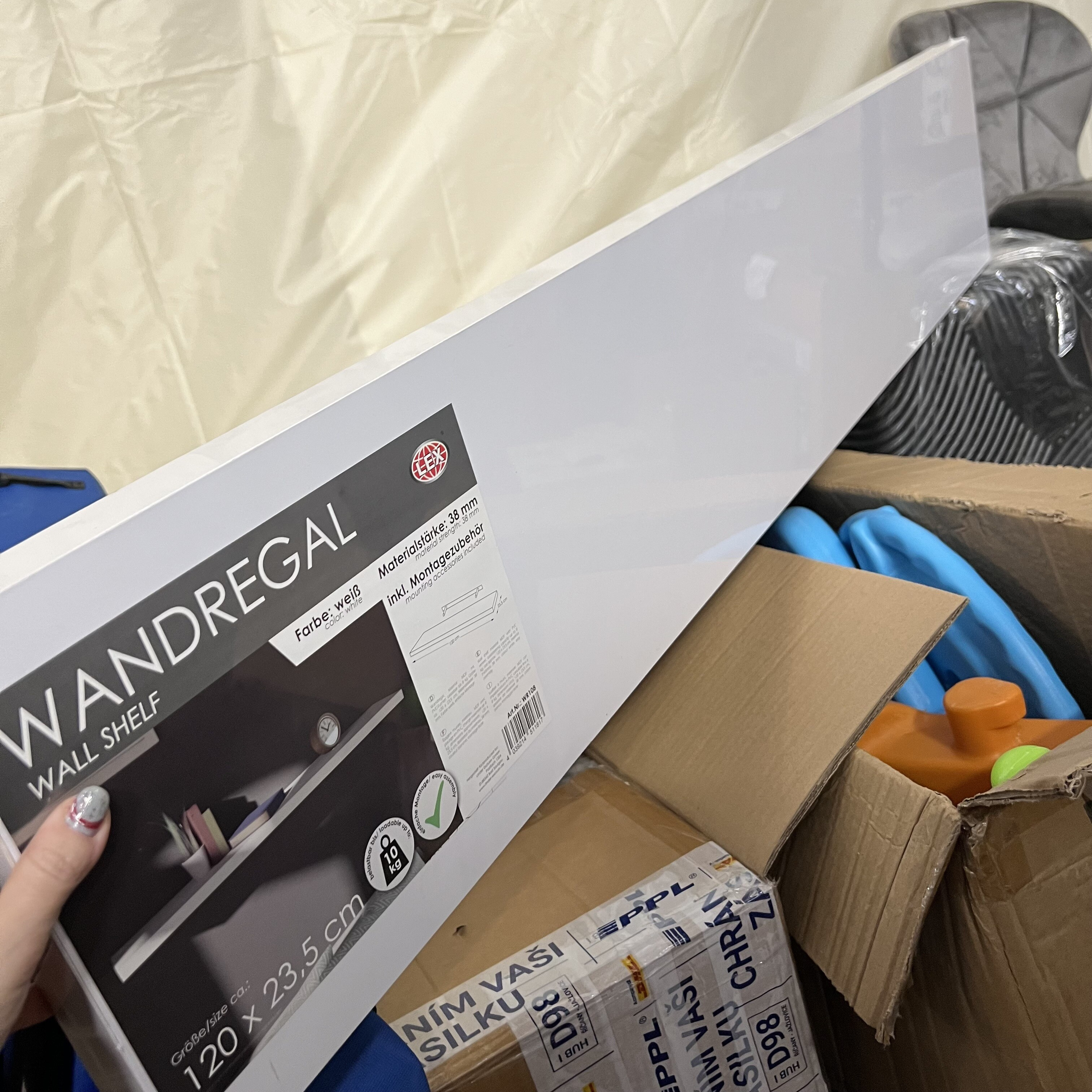 Polička má poškozené rohy a hrany. V ochranné fólii, nepoužitá.