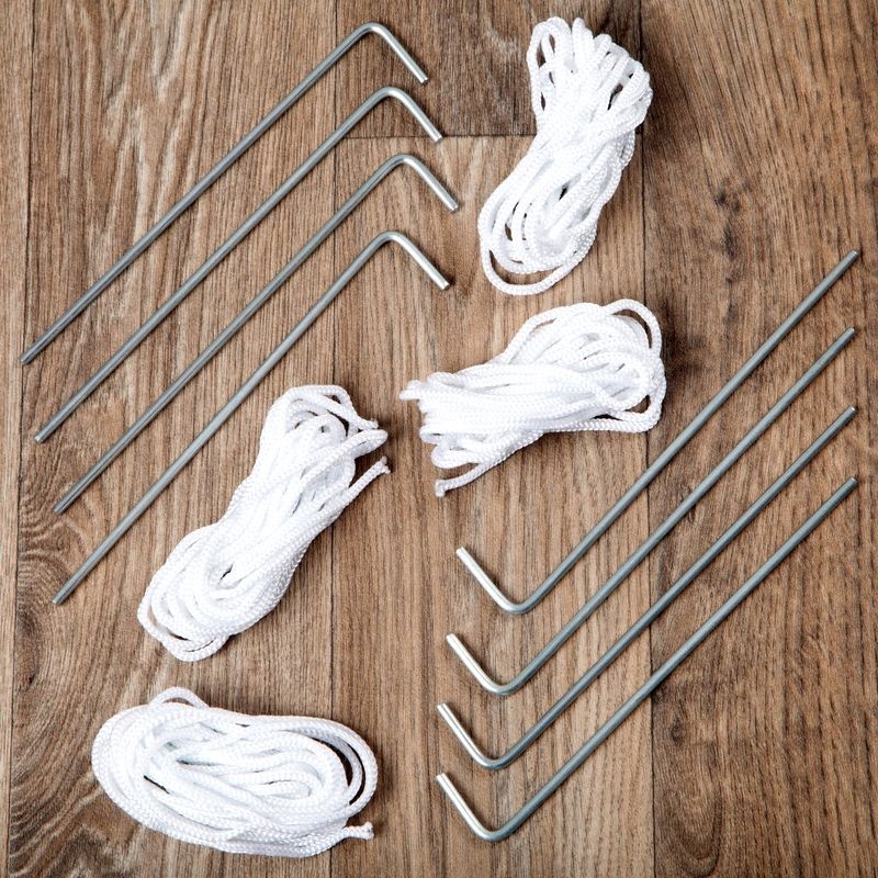 Pokud altán budete využívat ve venkovních prostorech, je ho nutné ukotvit k zemi kolíky, které jsou ve standartní výbavě.