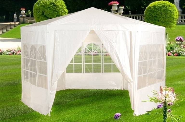 Párty stan s lehkou konstrukcí, s postranními panely vybavenými okny, vyroben z kvalitní tkaniny WATERPROOF.