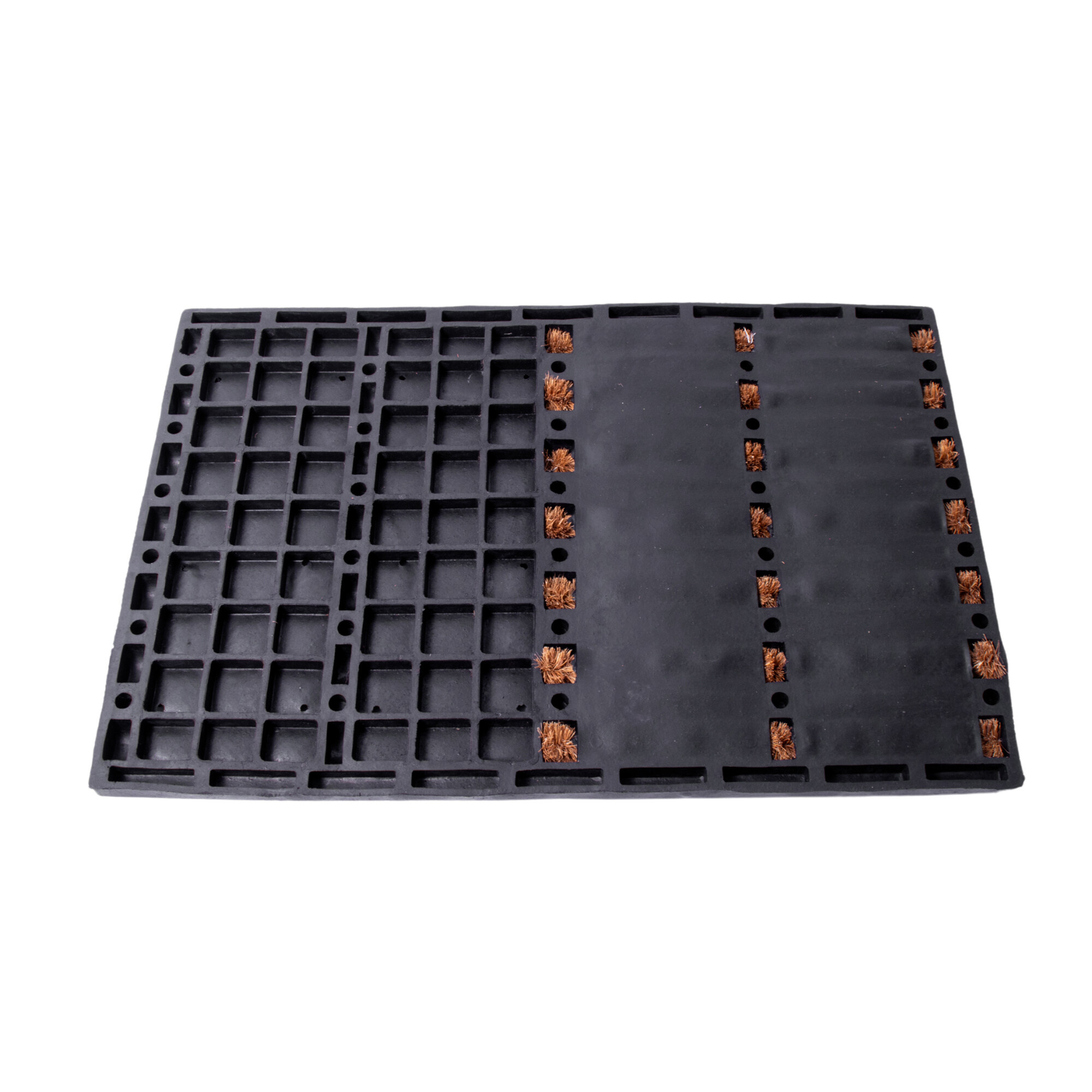 Kokosová rohož je vyrobena z přírodního materiálu, což ji činí ekologickou a šetrnou k životnímu prostředí. Kokosová rohož je velmi odolná a odolává zatížení velkým množstvím chodců. Je tedy ideální pro využití v průchozích prostorách. Kokosová rohož má schopnost absorbovat vlhkost, což z ní činí skvělou volbu pro vchody a chodby, kde může pohltit vlhkost z bot a zachytit nečistoty. Gumová část s detailem stopy je vhodná pro odkládání znečištěné/mokré obuvi.
