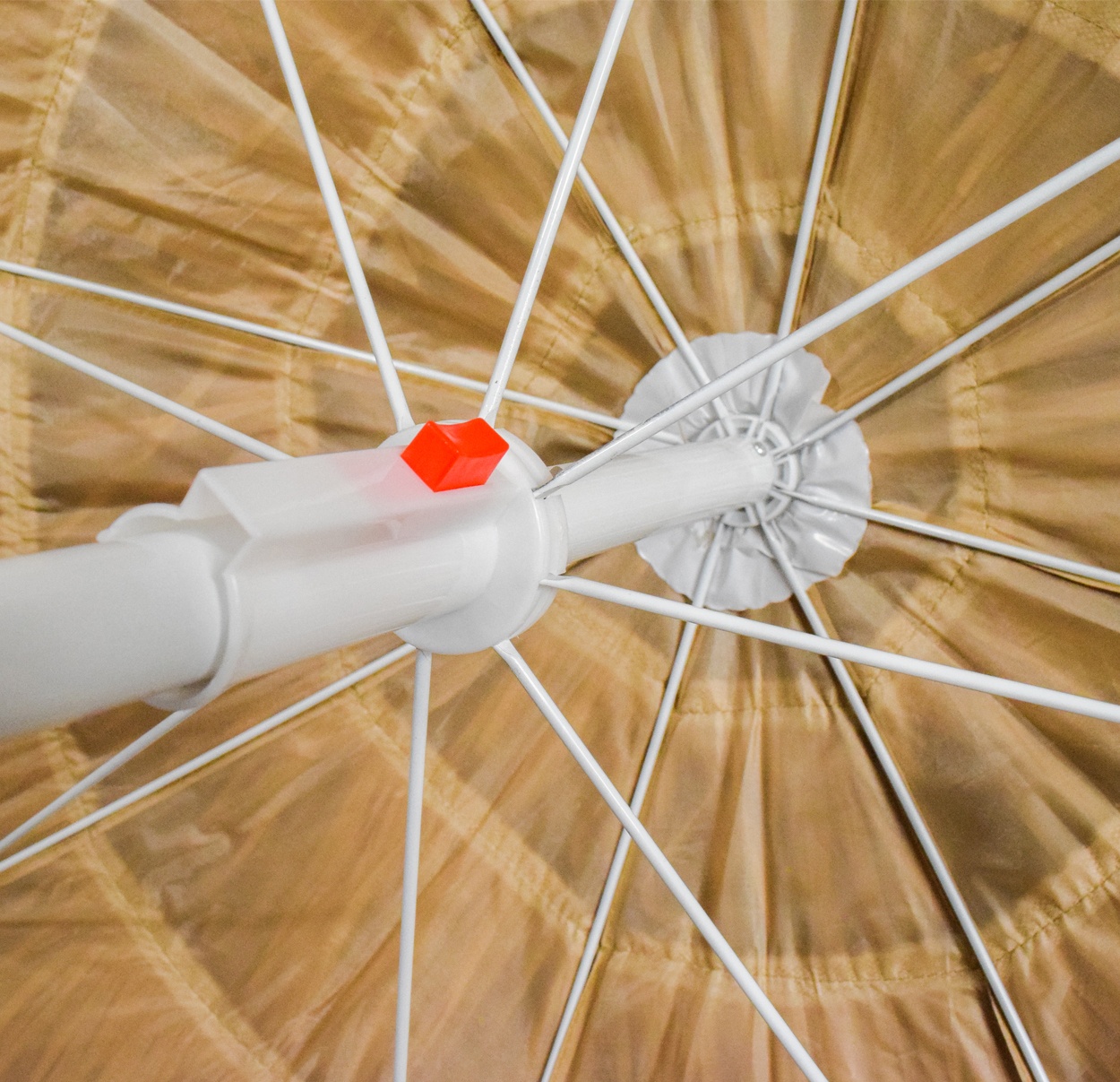 Snadnou manipulaci při rozkládání a skládání slunečníku zajišťuje jednoduchý mechanismus. Stříšku samotnou pak můžete naklápět.