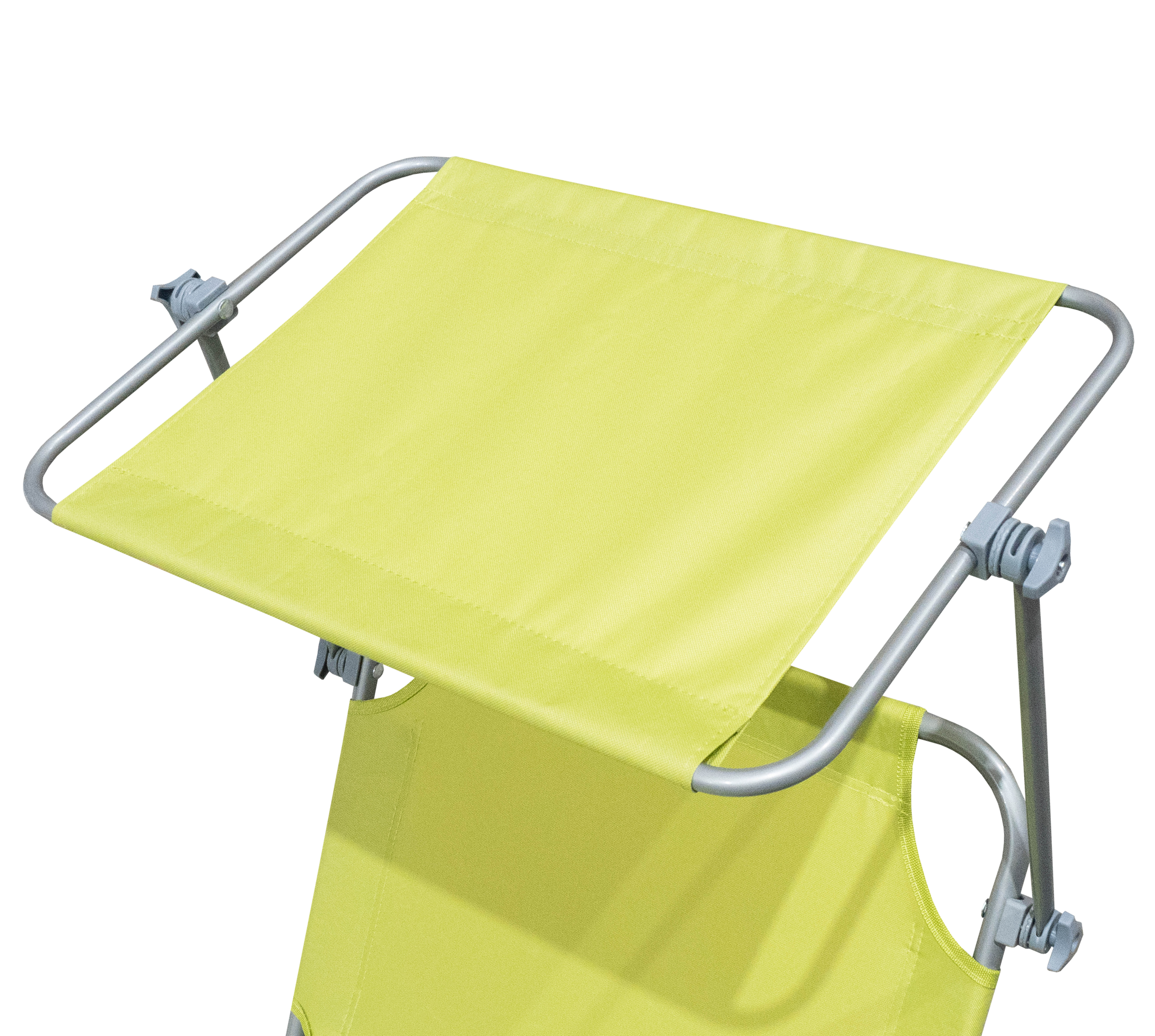 Na lehátku lze odpočívat i při ostrém sluníčku, neboť zabudovaná stříška Váš obličej dokonale ochrání před prudkým sluncem.