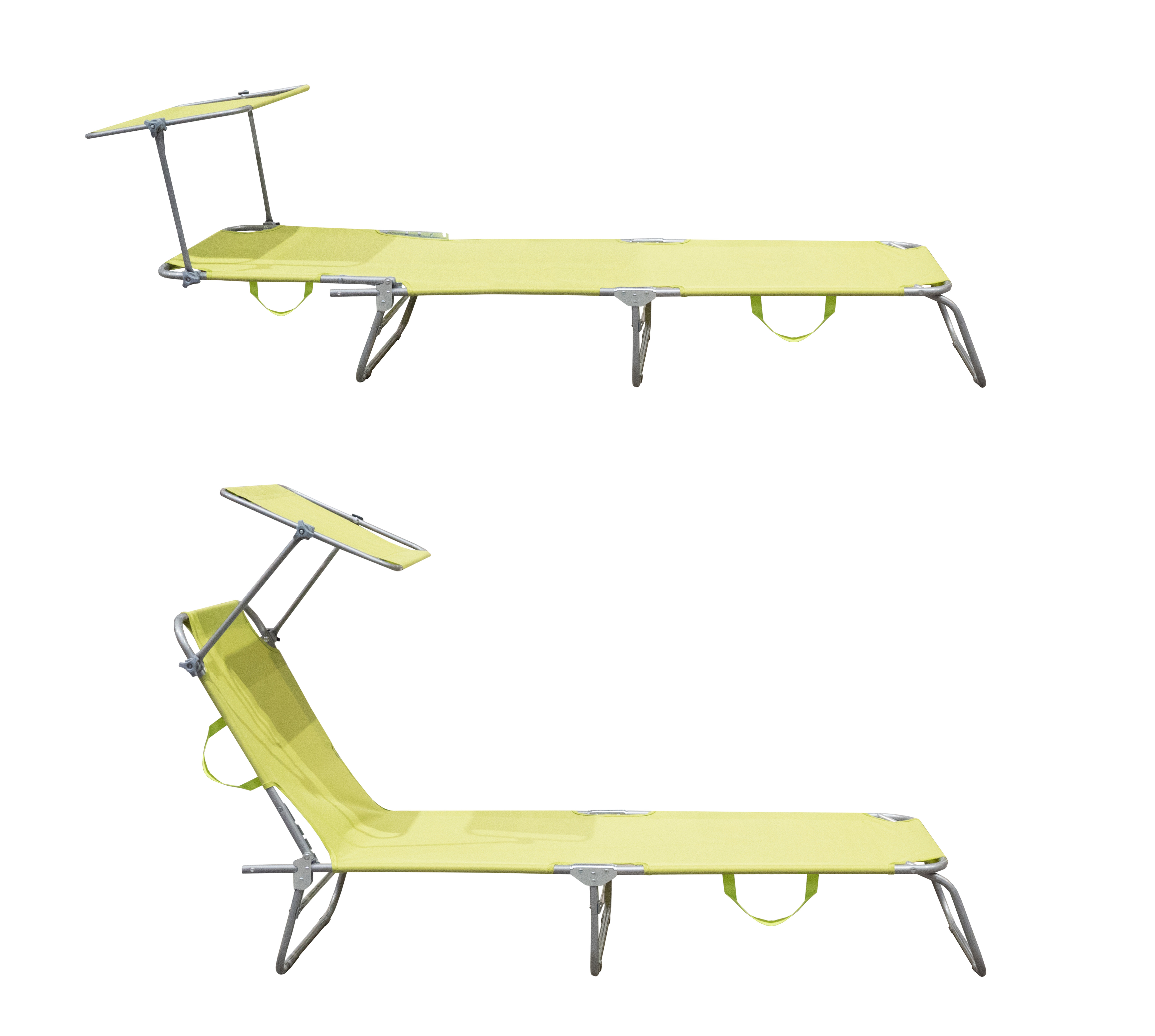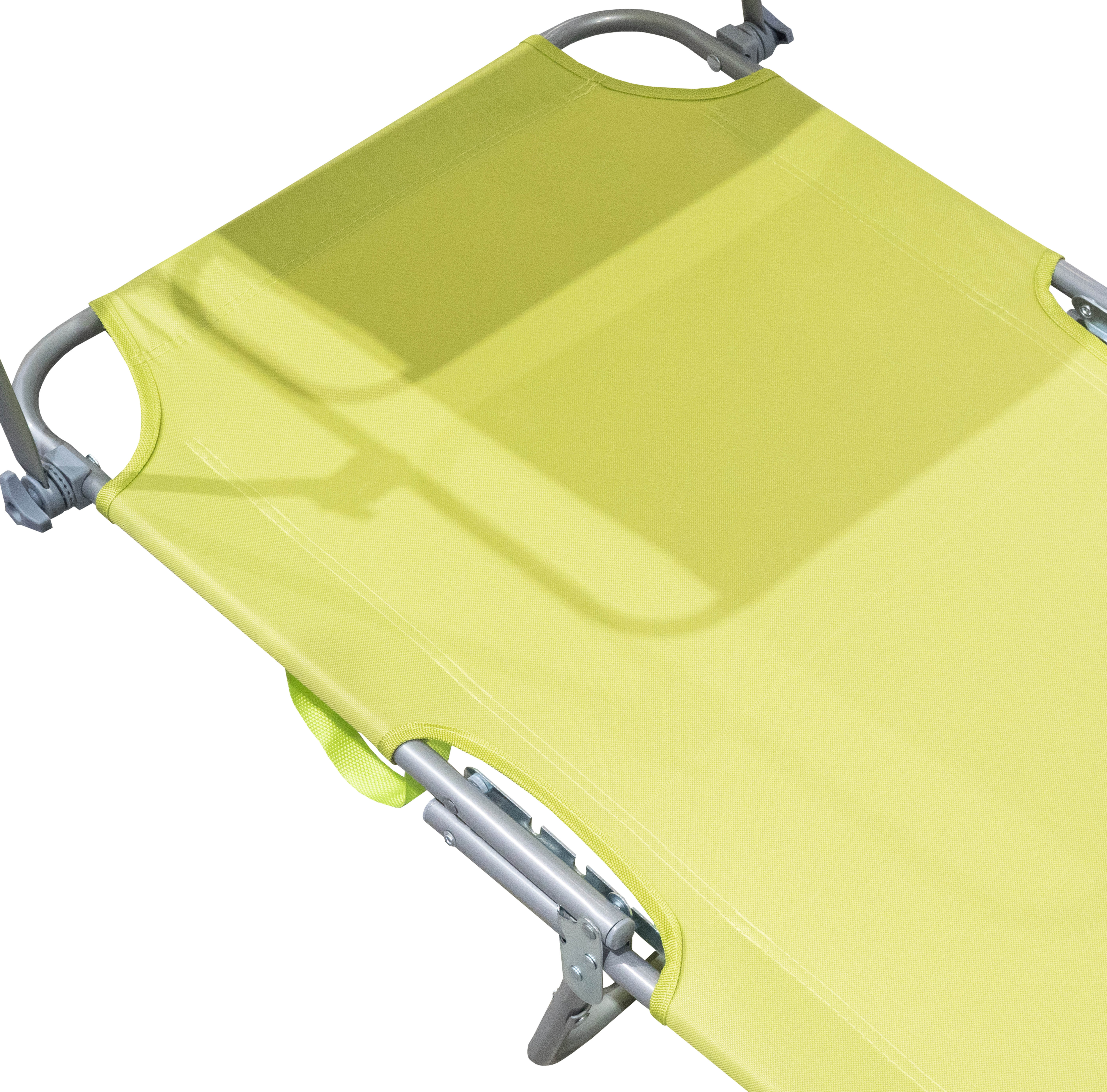 Skládací zahradní lehátko se zpevněnou ocelovou konstrukcí, v moderním designu, vhodné pro zahrady, na kempování či pláže.