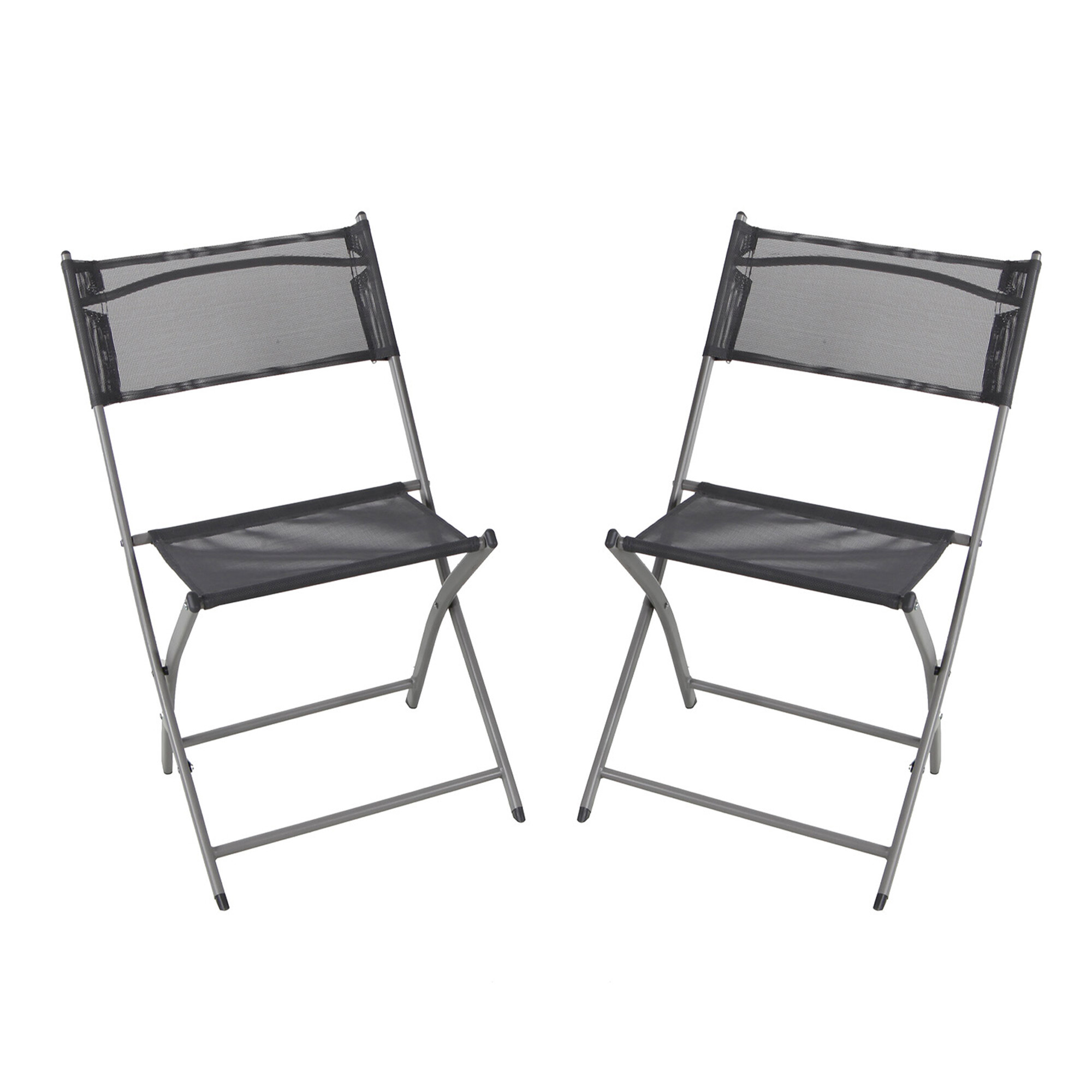 Křesla mají kovový rám s textilním potahem a jsou také skládací.