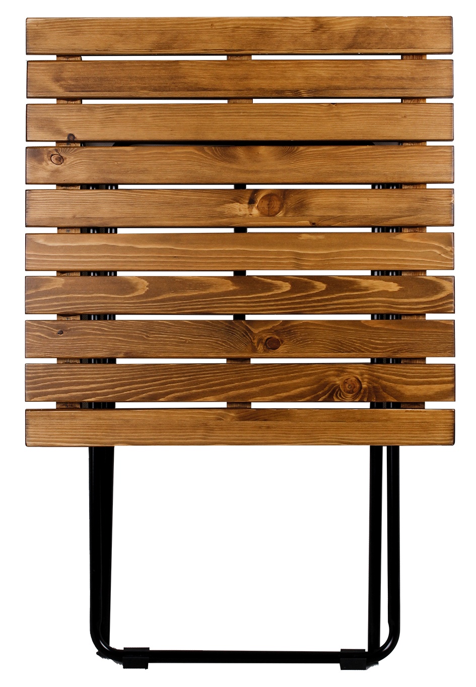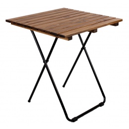 Skládací zahradní stolek s pevným kovovým rámem a dřevěnou deskou, ideální pro zahrady, terasy, altány, balkóny, ale také do interiéru restaurací a kaváren.
