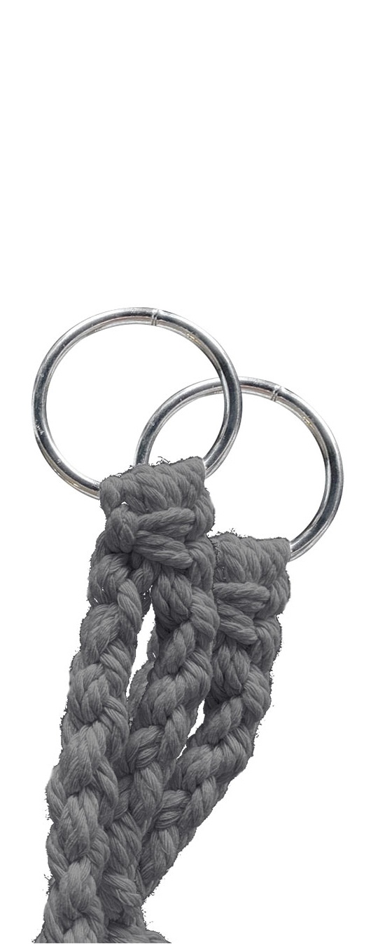 Sedací část je připevněna stabilními kovovými kroužky, díky čemu lze křeslo zavěsit téměř kdekoliv. Sedací díl je vyroben z pevného pleteného lana.