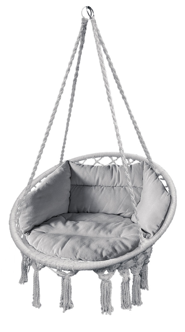 Závěsný koš v sobě spojuje komfort a nejnovějšími designovými trendy. Zajímavá konstrukce v kombinaci s uzlovými dekoracemi bez pochyby podtrhne design každého interiéru či exteriéru.