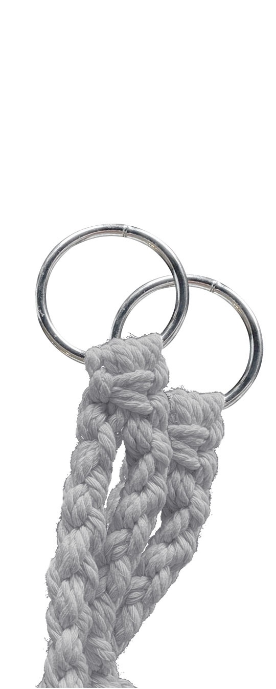Sedací část je připevněna stabilními kovovými kroužky, díky čemu lze křeslo zavěsit téměř kdekoliv. Sedací díl je vyroben z pevného pleteného lana.