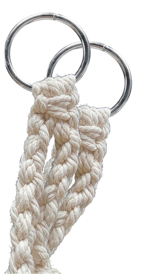 Sedací část je připevněna stabilními kovovými kroužky, díky čemu lze křeslo zavěsit téměř kdekoliv. Sedací díl je vyroben z pevného pleteného lana.