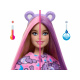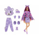 Panenka Barbie je skrytá v měkkém, plyšovém kostýmu medvídka. Po jeho sejmutí objevujeme stylovou panenku s jemnými rysy obličeje a dlouhými vlasy, připravenou ke hře na stylizaci a vyprávění příběhů.