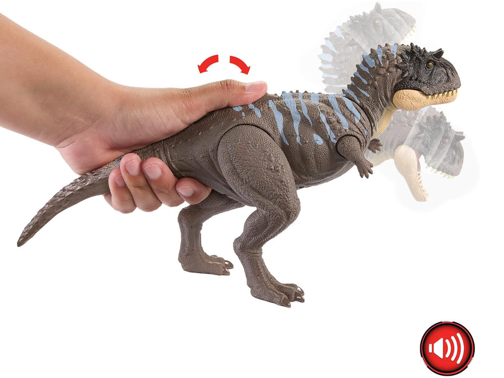 Ekrixinatosaurus má pohyblivé končetiny a navíc po posunutí tlačítka na hřbetě, dinosaurus otevírá svou čelist, cvakající zuby. Během útoku uslyšíme divoký řev, který může vyvolat husí kůži!