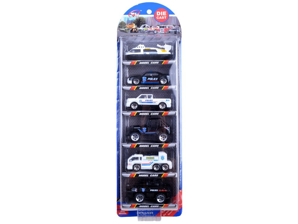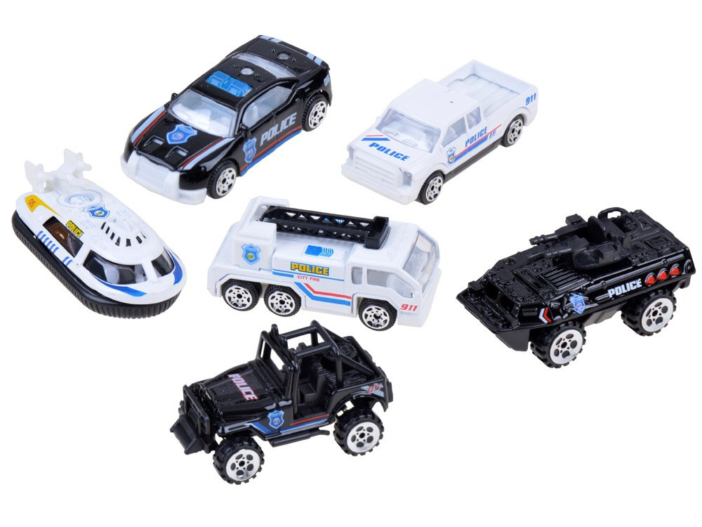 Sada 6 přestřelek - policie je nejlepší volbou pro každého, kdo se nebojí výzev a statečně čelí jakémukoli nebezpečí, stejně jako policisté. S pomocí této sady bude každý chlapec schopen zachránit své hračky z jakýchkoli potíží.Kovová autíčka mají plastové pohyblivé doplňky.