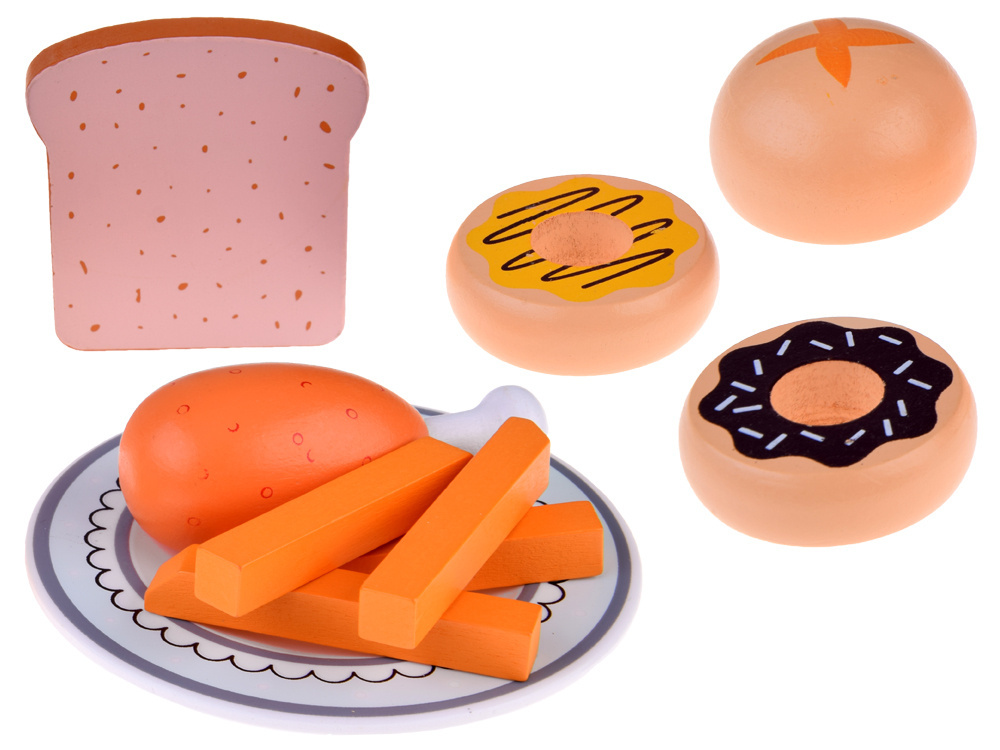 Soupravu doplňuje krásný porcelánový talíř, lahodné koláče, hranolky z batátů, kuřecí stehno a gurmánské tousty, díky nimž je jídlo nadpozemsky chutné.