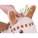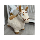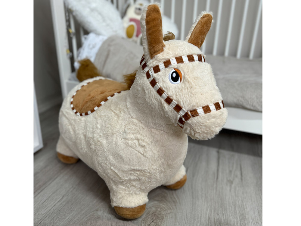 Koník je vyroben z tlusté gumy, potažené měkkým, plyšovým potahem. Byl vyroben velmi esteticky a s důrazem na detaily, jako jsou vyšívané oči, uzda nebo měkké, látkové sedlo. Pozornost také přitahuje hustá hnědá hříva a ocas. Velké uši, které dítě může chytit, usnadňují udržení rovnováhy během "jízdy".
