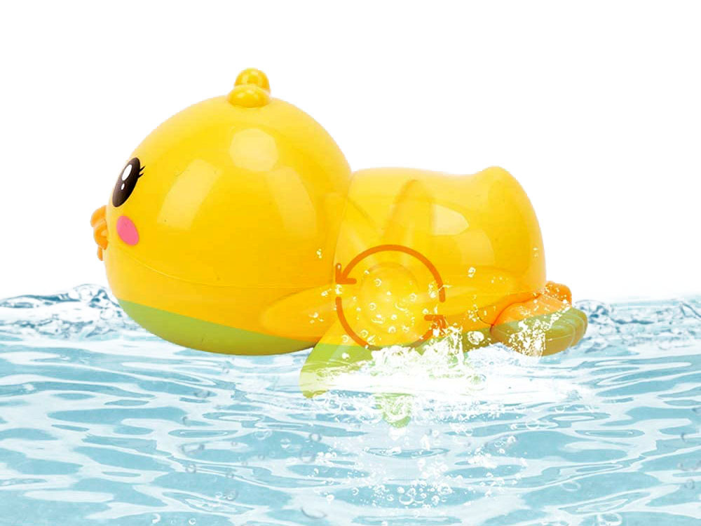 Hračka je celá z plastu, na spodní straně je knoflík, který je třeba natočit a kachničku pustit do vody. Hračka pak začne pohybovat křídly.Velikost: 10 x 9 x 6,5 cm