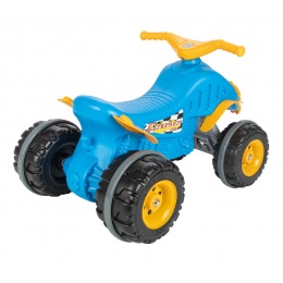 Odrážedlo čtyřkolka modrá. Maximální nosnost 35 kg, velikost 44×67,5×44 cm. Splňuje normy EU.