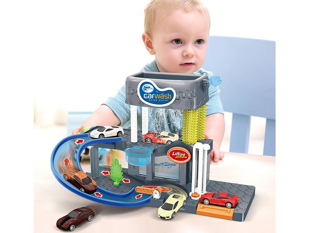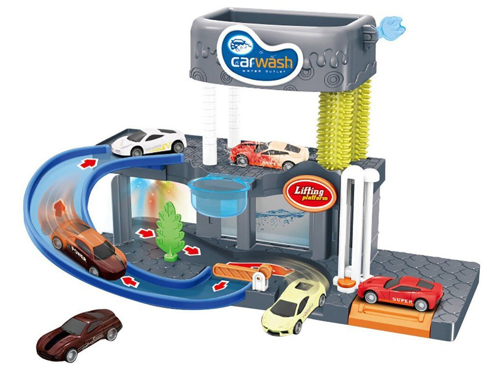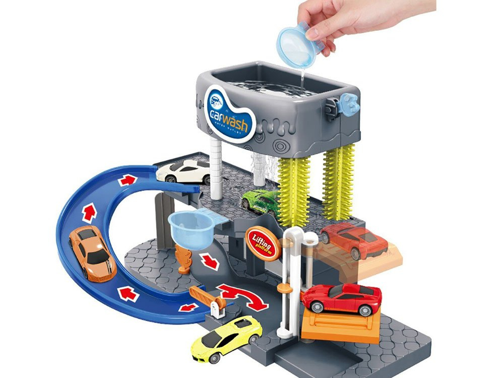 Dvouúrovňová myčka pro péči o vozidla je určena pro znalce čistých vozidel. Myčka s rampou, výtahem, skutečnou létající vodou, silikonovými kartáči, zvukovými a světelnými efekty potěší každé dítě.
