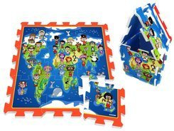Při skládání puzzle se batole učí poznávat tvary, barvy, rozvíjí svou představivost a učí se rychle reagovat a asociovat.Hádanky uklidňují a učí trpělivosti.Balení obsahuje 9 velkých měkkých dílků s vyobrazením mapy světa a na ní umístěných dětí a zvířat z různých koutů světa. Díky tomu se batolata již od útlého věku seznamují se zeměpisem a rozmanitostí našeho světa. Veselá grafika zaujme každého malého fanouška dobrodružství.