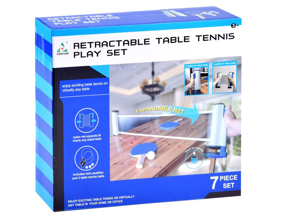 Tuto praktickou sadu si můžete vzít doslova kamkoli a používat ji podle libosti. Potřebujete jen desku stolu a máte hotovo. Sada obsahuje nastavitelnou síť, dvě rakety a tři míčky.