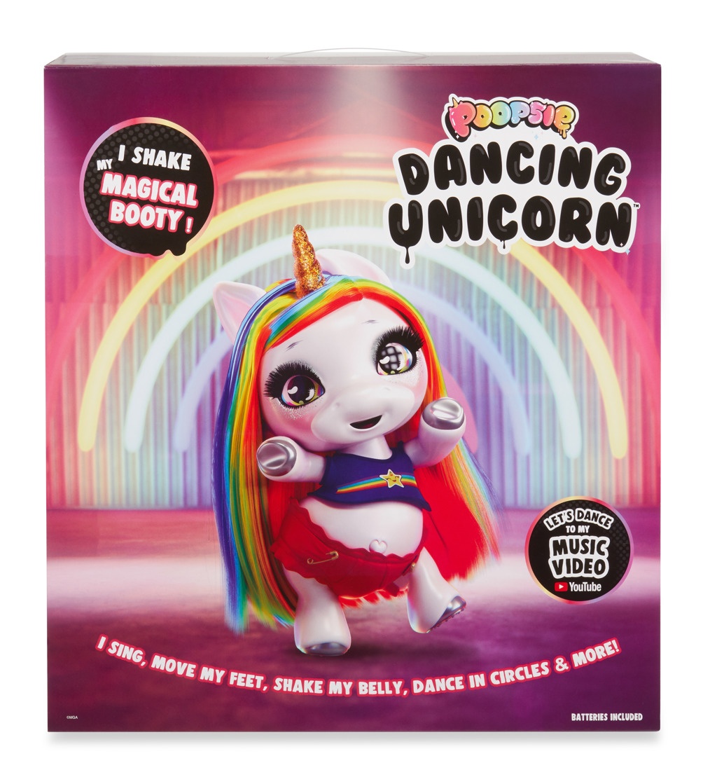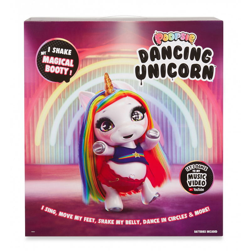 Poopsie Tančící jednorožec je pokrytý třpytkami a skvěle tančí na písničku, kterou také sám hraje. Nejen, že můžeš česat jeho vlásky, ale také společně s ním tančit.