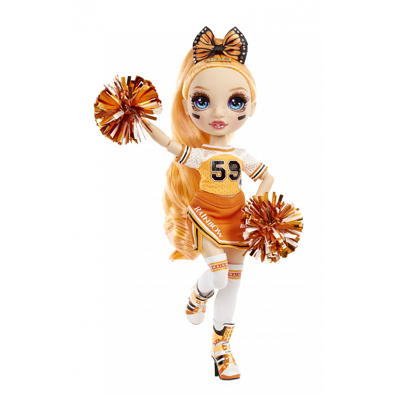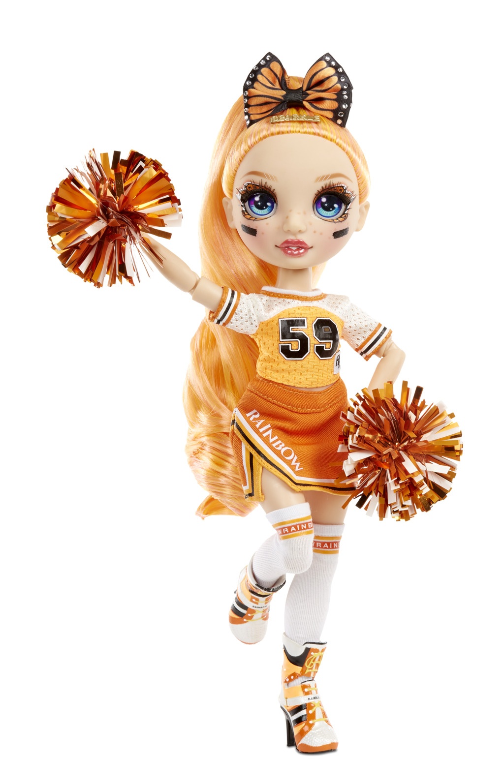 6 originálních módních panenek nyní přichází jako zábavné a báječné roztleskávačky s pompony. Každá panenka Cheer Doll s dlouhými česatelnými vlasy a krásnými řasami je oblečena ve svých barvách, což podtrhuje její jedinečný styl. A když dáte všechny panenky dohromady, stanou se jedním fandícím týmem Rainbow High, který je připraven fandit svému týmu ve velké hře.